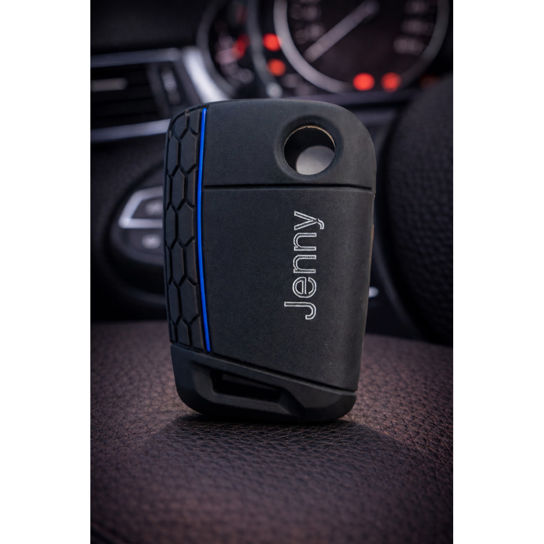 Schutzhülle Autoschlüssel schwarz-blau für Klappschlüssel MQB - Personalisiert